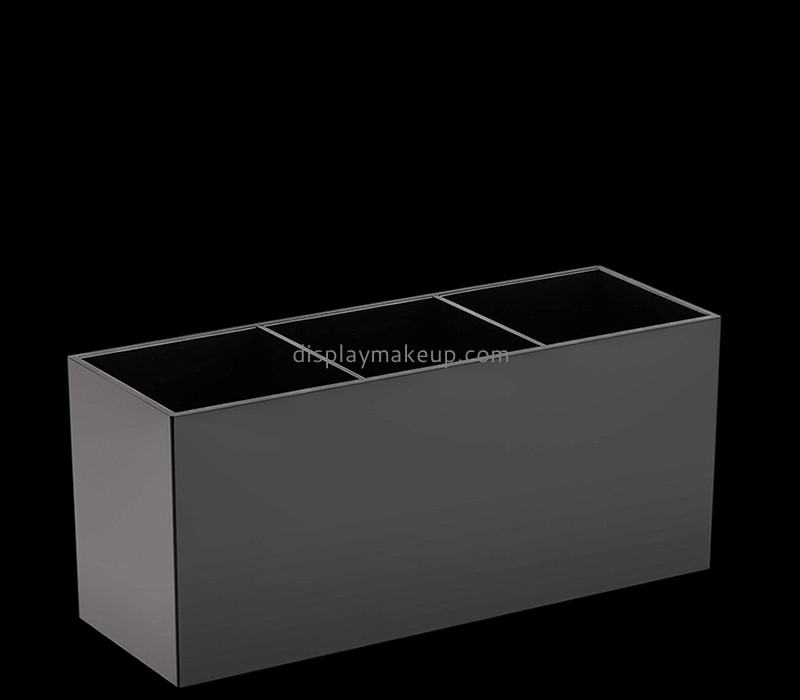 Elevate your makeup organization with custom black acrylic cosmetics brush holders featuring three dividers. Crafted from high-quality black acrylic, these holders offer a sleek and modern solution for keeping your brushes organized and easily accessible.