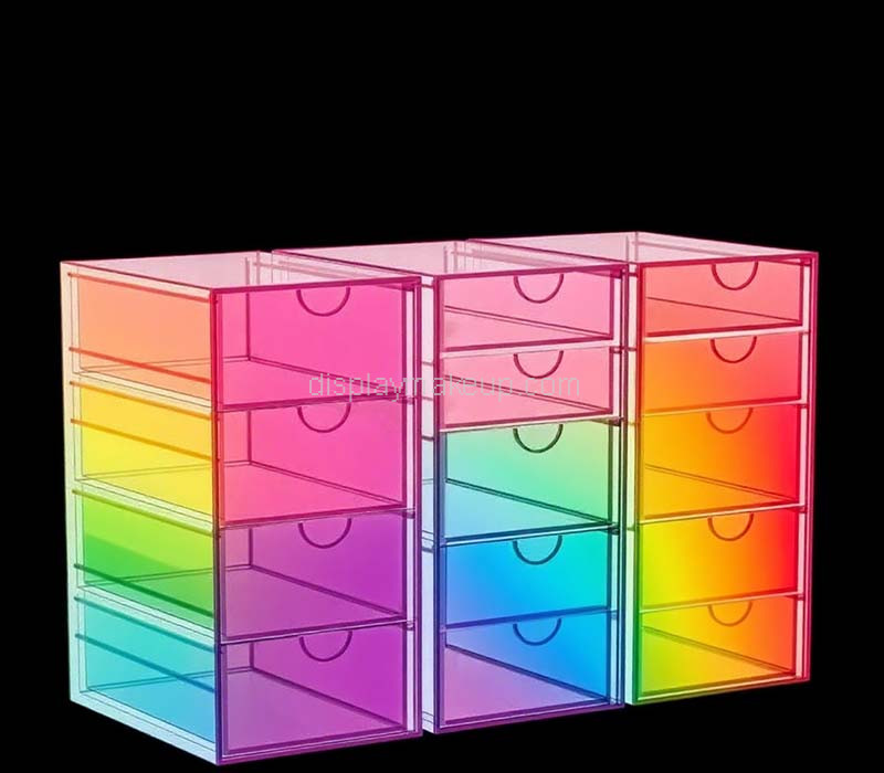 Custom iridescent acrylic bathroom makeup drawers organizer — Bring brilliance to your space with this eye-catching, multi-color shimmer organizer. Perfect for storing makeup and toiletries, it combines style with practical storage. Enjoy seamless door-to-door delivery to the US, Europe, and select Asian countries—one all-inclusive price covers taxes, duties, and shipping fees.
