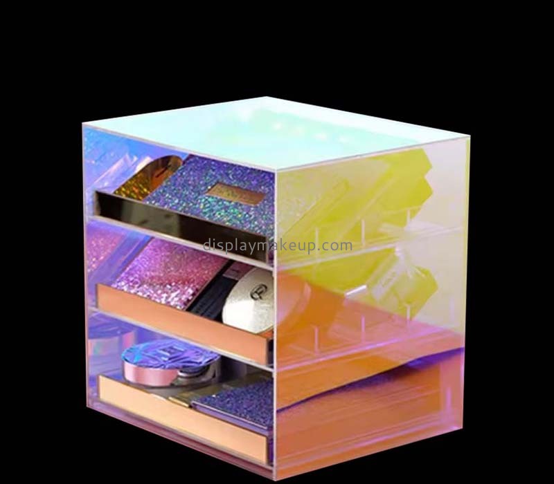 Introducing a bespoke rainbow acrylic cosmetic organizer, meticulously crafted to add a burst of color and organization to your beauty regimen. This vibrant organizer showcases a spectrum of hues, infusing your vanity or workspace with playful charm.