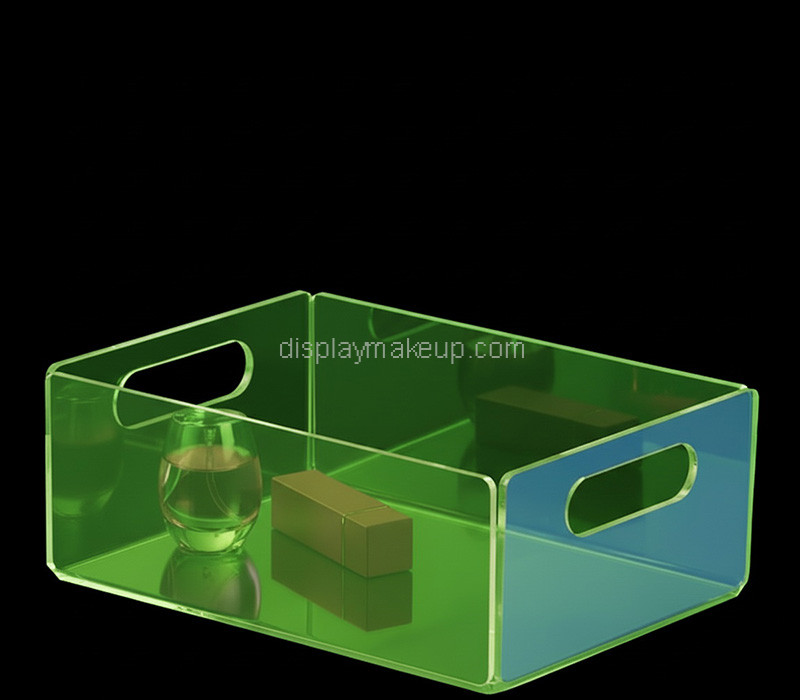 Custom translucent green acrylic cosmetics organizer tray, made with premium durable acrylic for a sleek and modern touch. Perfect for neatly storing skincare, makeup, and accessories at home, salon, or retail. Shipping includes all duties, taxes, and fees, ensuring a smooth, worry-free, and transparent purchasing experience.