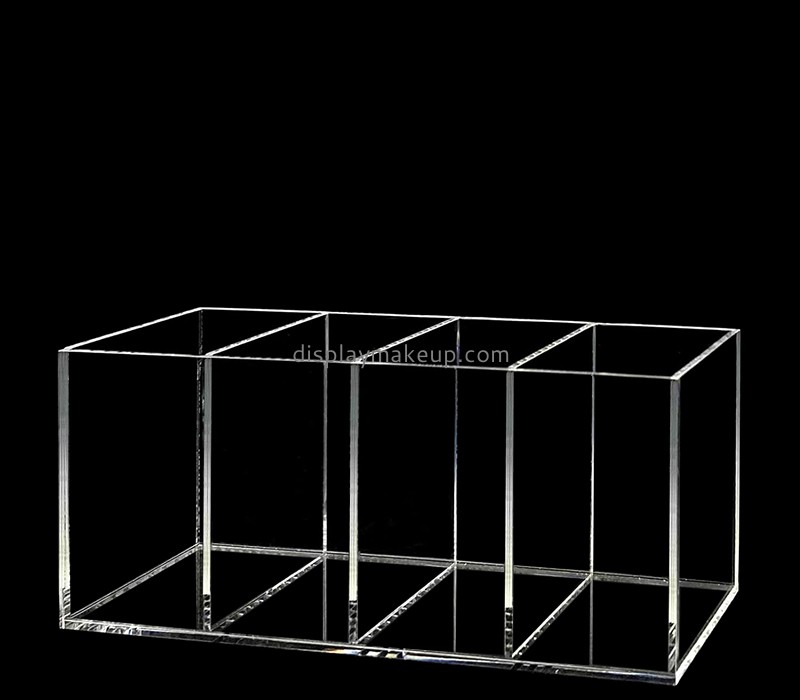 Tailored to perfection, this custom clear acrylic makeup brush holder boasts four compartments, enhancing organization and elegance. Crafted with high-quality acrylic, its transparent design allows for easy visibility, showcasing brushes in a sleek, organized manner.