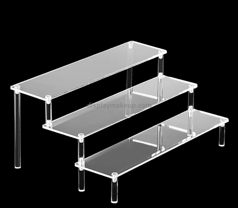 Immerse yourself in the beauty of organization with our custom clear acrylic makeup items countertop display risers. Meticulously crafted, these transparent risers add a touch of modern elegance to your makeup presentation.