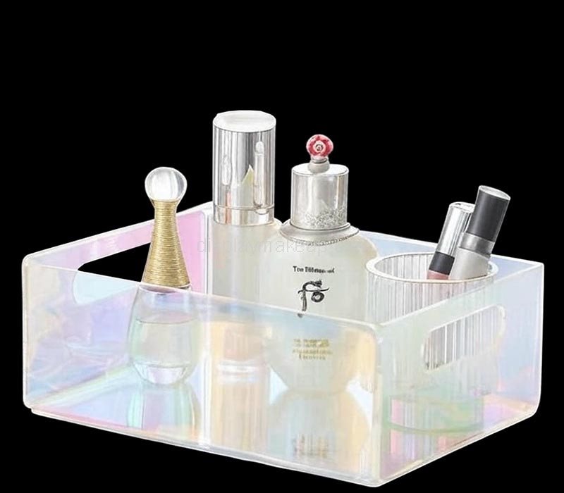 Custom rainbow acrylic makeup storage tray – vibrant and durable, perfect for organizing cosmetics. Wholesale only, ideal for beauty stores and salons. We cover all import fees for the US, UK, EU, and Asia.