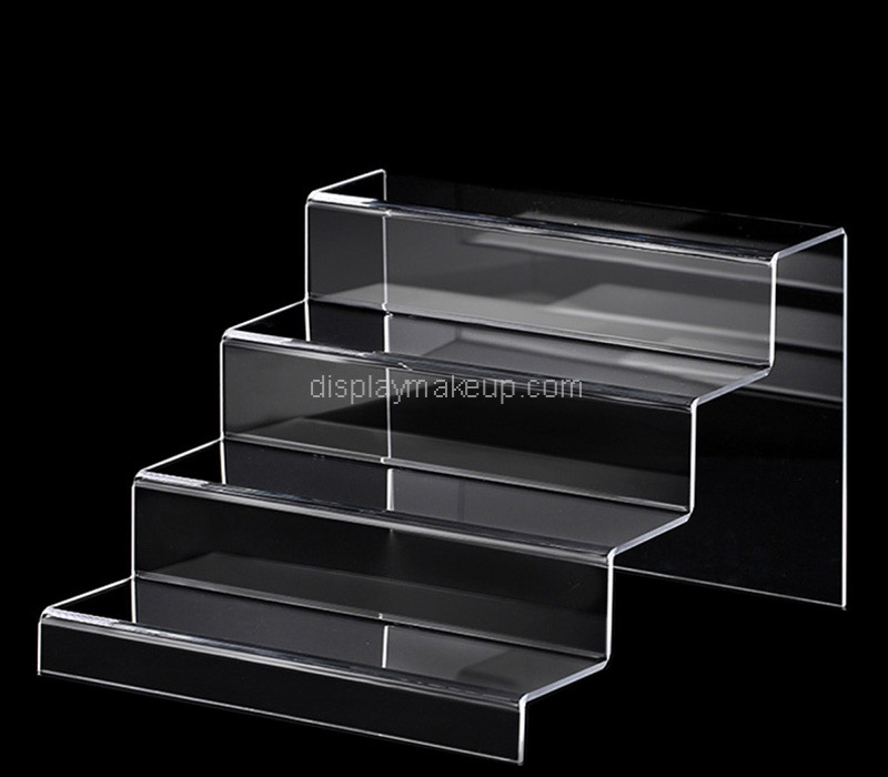 Custom acrylic retail 4 tiers perfume display riser designed for elegant product presentation in stores and boutiques. The multi-level structure showcases fragrances clearly while maximizing space. Made from durable, crystal-clear acrylic, it’s easy to clean and fully customizable in size, color, and branding.