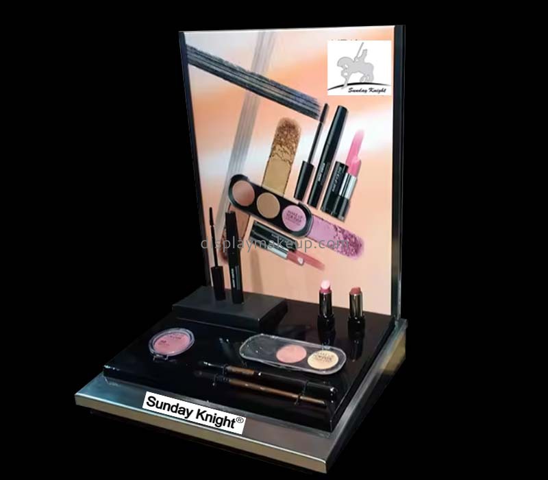 Presenting a bespoke acrylic retail shop lipstick display stand, meticulously crafted to captivate. This sleek exhibit boasts precision-cut acrylic, ensuring durability and clarity. Enhanced with UV painting, it radiates vibrancy, attracting attention from afar.