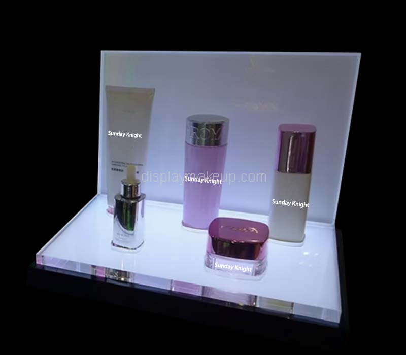 Custom acrylic skincare illuminated display props for supermarket store exhibition—bright, durable, and designed to enhance product visibility in high-traffic retail environments. Wholesale only, with door-to-door delivery and all taxes paid, ensuring a smooth, ready-to-use display solution.