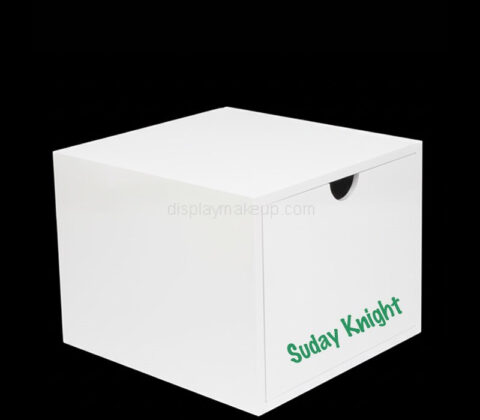 Custom white acrylic skincare makeup drawer storage box with a clean, minimalist design. Made from durable, easy-to-clean acrylic, it neatly organizes cosmetics and skincare essentials, keeping countertops tidy while adding an elegant touch to vanities, salons, or retail displays.