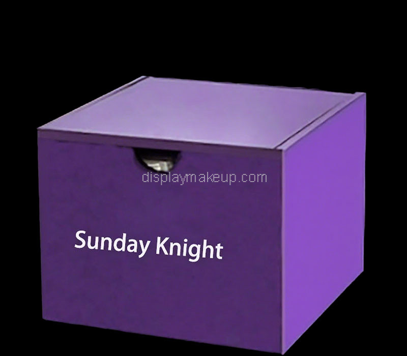 Custom purple acrylic skincare storage box with lid — stylish, durable, and perfect for organizing cosmetics or beauty essentials. The sleek translucent design adds elegance to any vanity or bathroom. Delivered right to your doorstep with all fees included. Ideal for personal use or as a thoughtful gift.