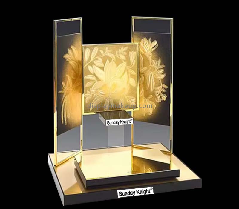 Enhance your trade show booth's allure with bespoke acrylic perfume display props, tailored to your brand's essence. Designed to exude sophistication, these props elegantly showcase your fragrances while featuring personalized printing of your logo.