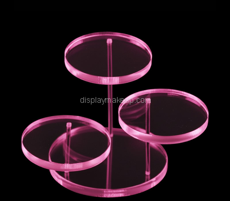 Custom round translucent pink acrylic display risers stands for makeup — elegant, sturdy, and designed to enhance product presentation. Perfect for cosmetics, perfumes, or jewelry displays in stores or at events. Crafted from premium acrylic for lasting clarity. We handle taxes & duties for USA, EU, UK & Asia.