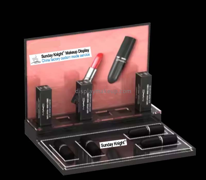 Introducing our custom wholesale black acrylic beauty lipstick display props with pattern printing, a chic solution for showcasing lip products. Crafted from premium acrylic, these props offer durability and a sleek, modern aesthetic.