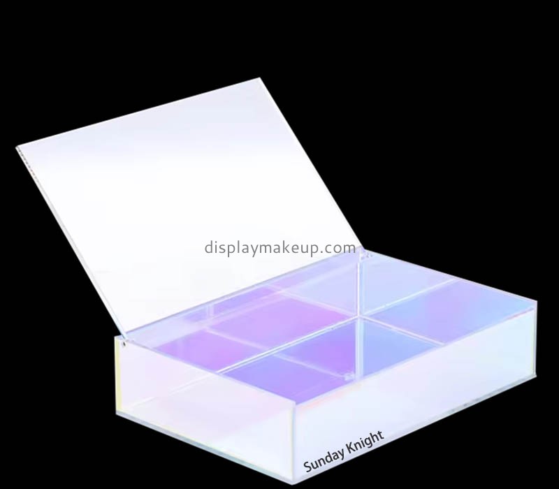Custom wholesale white and rainbow acrylic lipstick organizers with dividers and lids offer a stylish and practical storage solution for cosmetics. These organizers, featuring a pristine white base with vibrant rainbow accents, provide a visually appealing way to store and organize lipsticks.