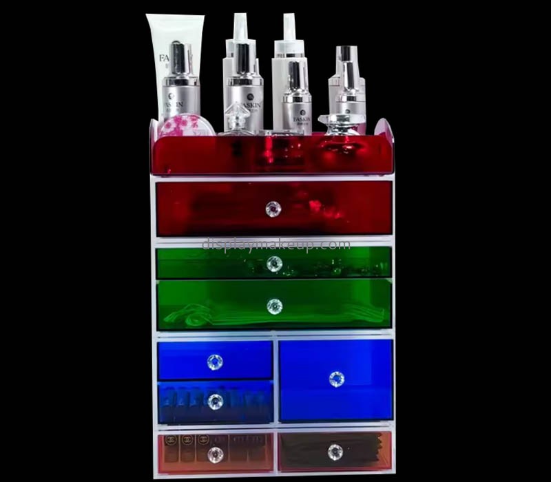 Introducing our custom wholesale acrylic multi-drawer makeup organizer, available in a variety of vibrant mixed colors. This organizer is crafted from high-quality, durable acrylic, offering both elegance and functionality.