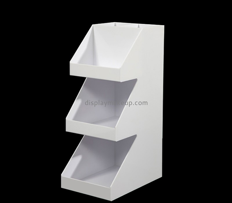 The custom white acrylic skincare display stand holder, designed with three tiers, is a versatile and elegant solution for showcasing your skincare products.