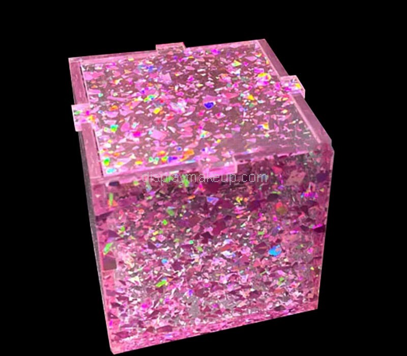 This wholesale custom pink glitter acrylic cosmetics storage box combines style and functionality. Featuring a dazzling pink glitter finish, it’s designed to keep your beauty products organized and dust-free. The sturdy acrylic construction ensures durability, while its sleek design adds a touch of elegance to any vanity or countertop.